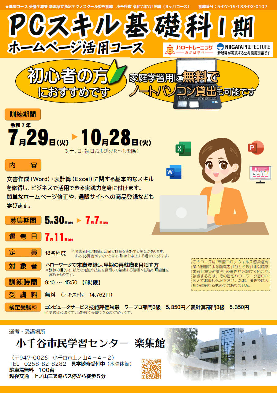 魚沼テクノスクール PCスキル基礎科1期ホームページ活用コース